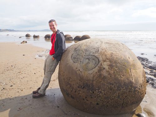 Around 50 spherical boulders can be found at a beach a bit south from Oamaru. Some of them weight over seven tons. Their age is estimated to be around 60 million years.